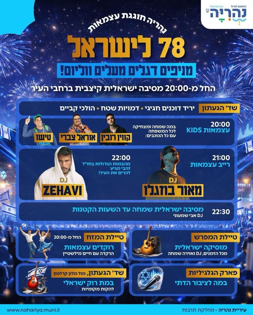 חג עצמאות שמח ומשמח! בואו לחגוג יחד את יום העצמאות ה-78 של מדינת ישראל – נהריה חוגגת בגדול!
