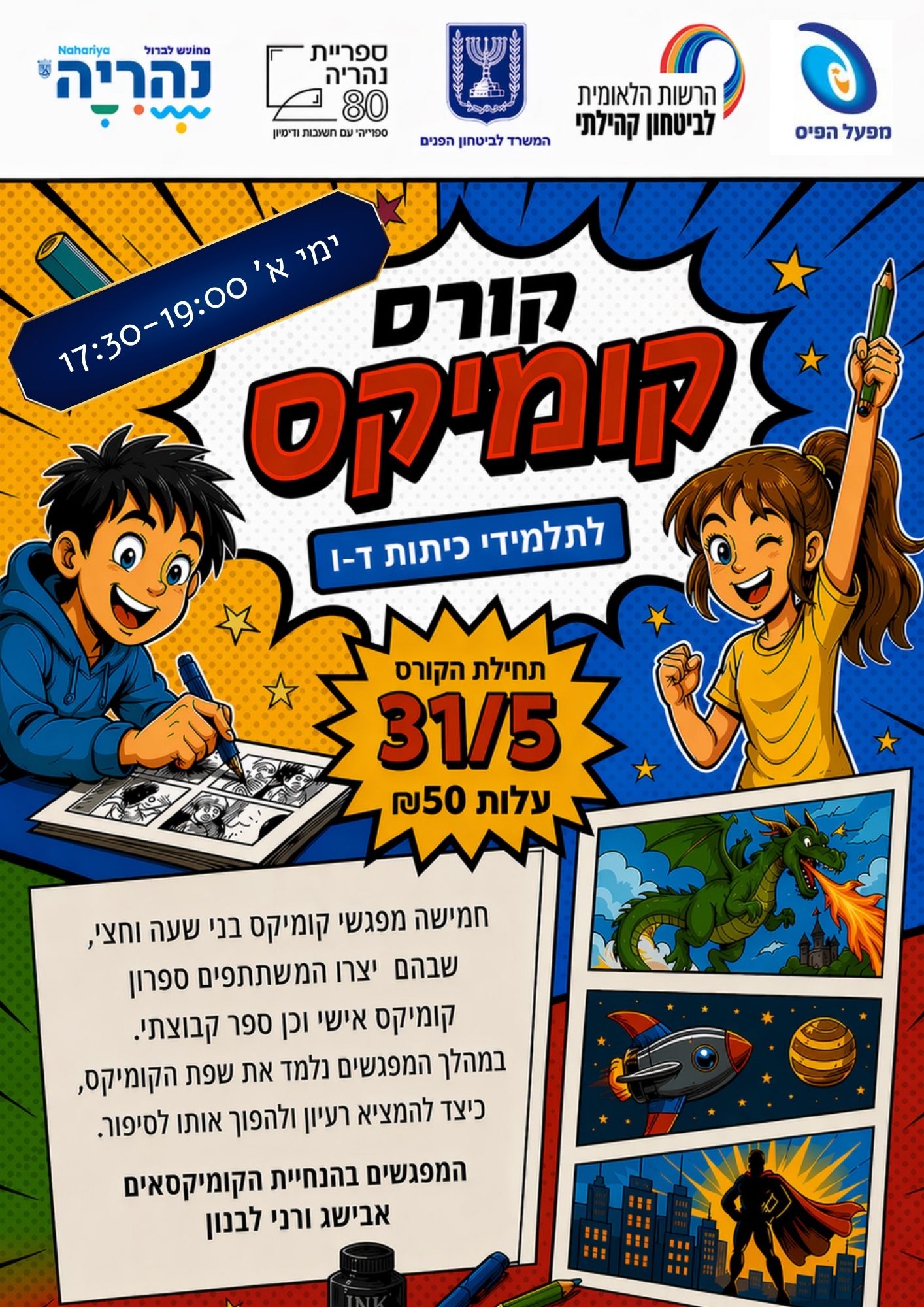 הוסף ללוח שנה 2026-06-28 17:30:00 2026-06-28 19:00:00 Asia/Jerusalem סדנת קומיקס לתלמידי כיתות ד-ו למידע מלא: https://nahariya.muni.il/events/660/ ספרייה עירונית
