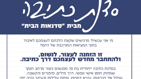 30 יוניכלליסדנת כתיבה "סדנאות הבית" בהנחיית אילנה זיידמן