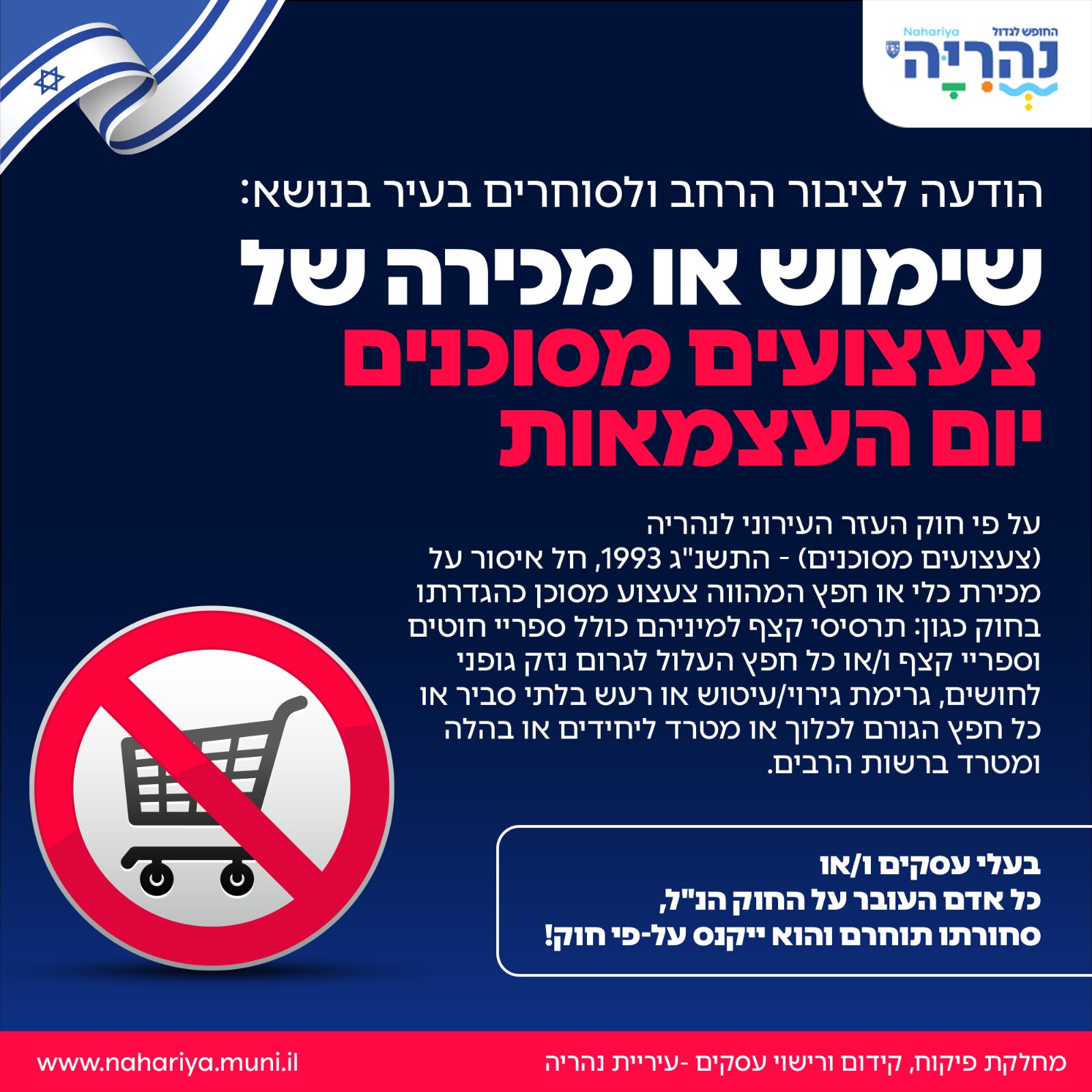 שימו לב – אכיפה מוגברת תבוצע בימים שלפני ואחרי יום העצמאות. הישארו בטוחים וחגגו באחריות!